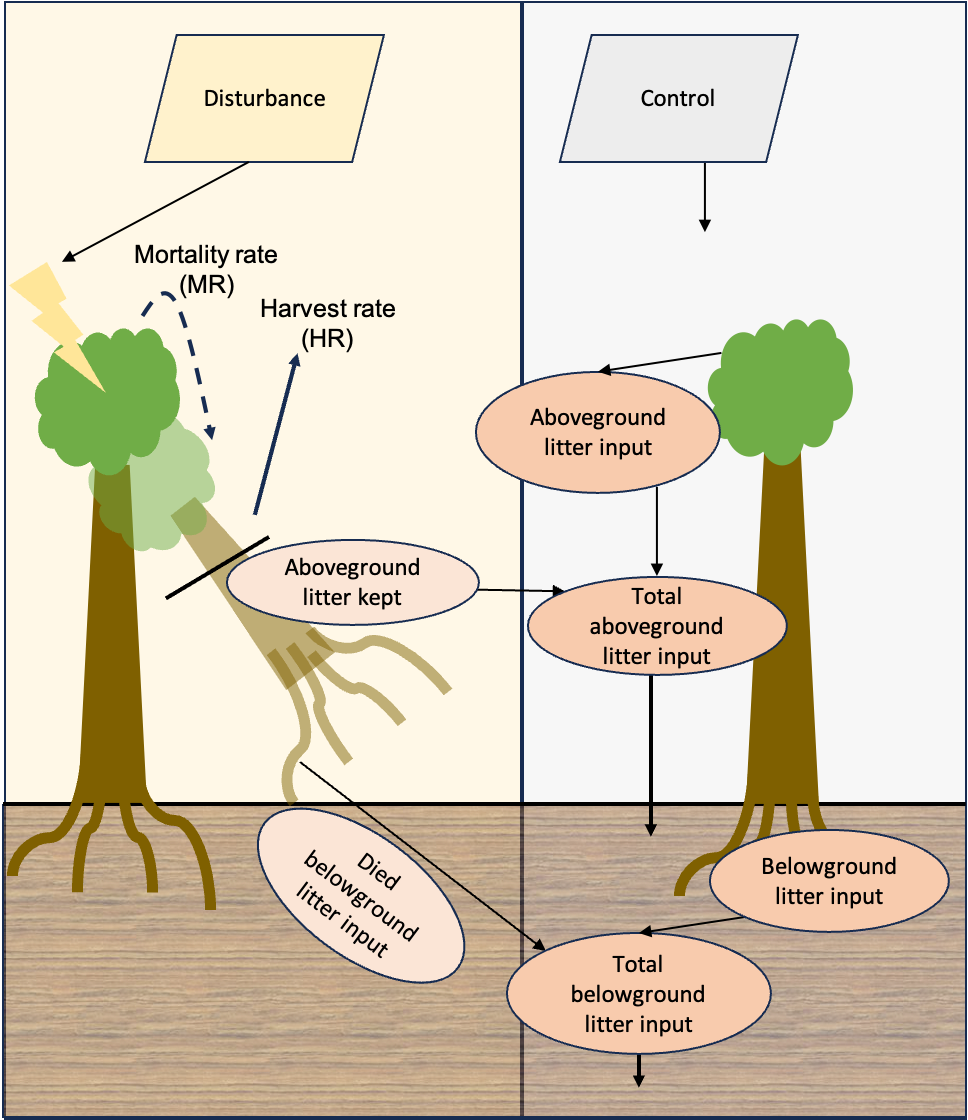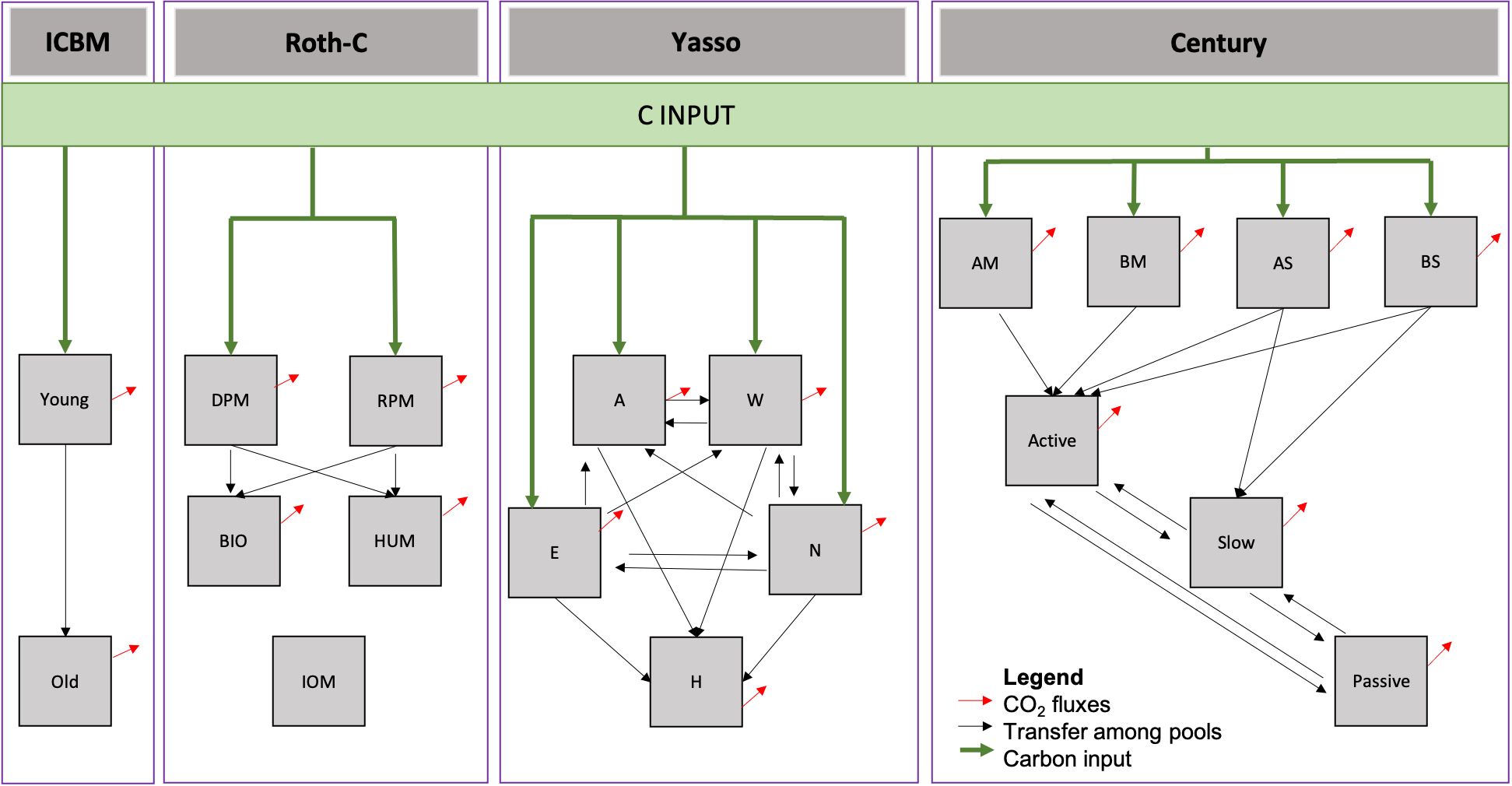 Each box represents a SOC compartment where the C is transferred (black arrows),